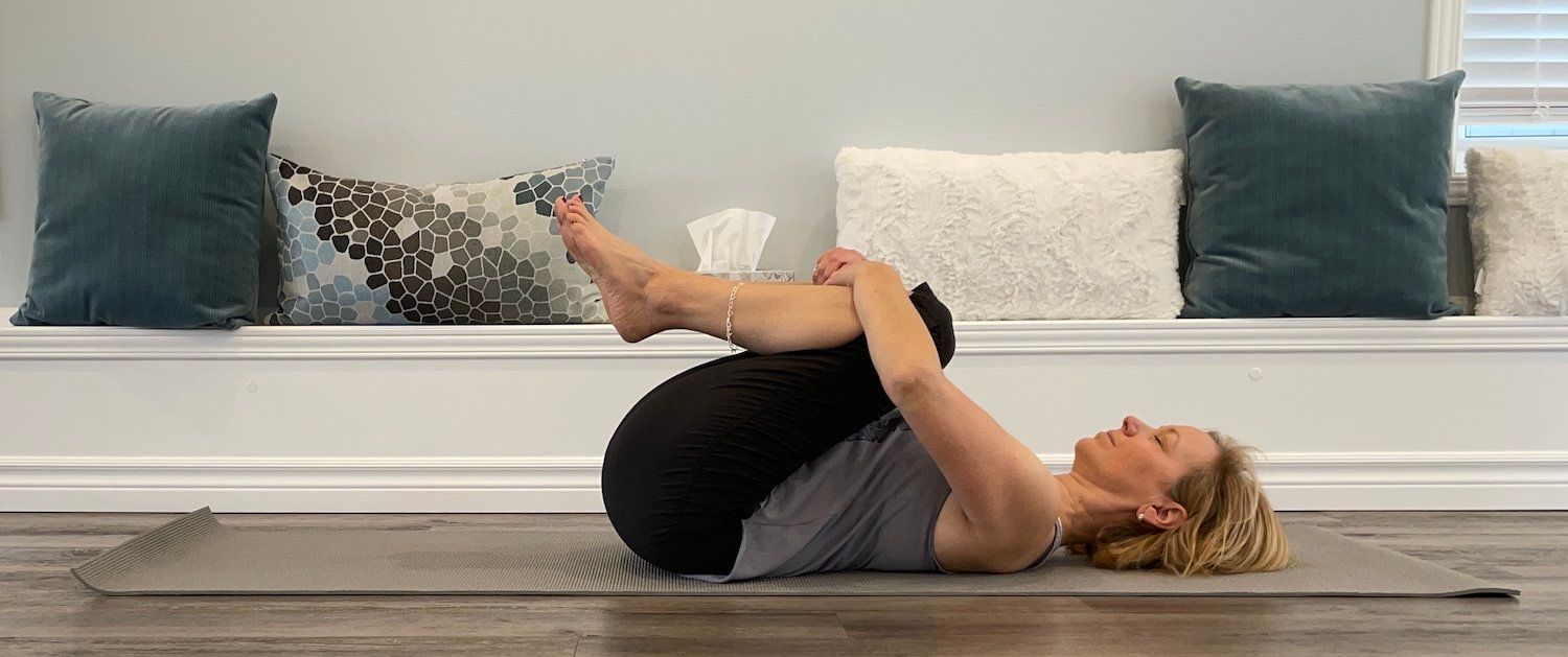 Have you ever done this to a baby to help them with constipation? Well, it works for us adults too. The wind release pose gently massages the abdominal organs, helps to release tension in the belly area and the low back.